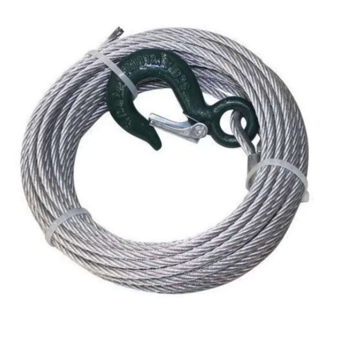 En la actualidad estamos montando cables de acero galvanizado en composición 6×37+FC con ganchos de alta seguridad y de alta resistencia con lengüeta de seguridad, y prensados con casquillo cónicos anti-pinchazos en diámetros de cable de 8mm, 10mm y 12mm, que son los cables de acero que mejor se adaptan a los cabrestantes que se fabrican en la actualidad.